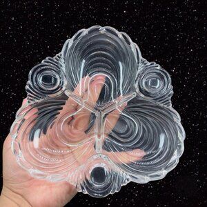 Cambridge Glass 3 Compartment Relish Dish Trefoil Caprice Clear Scalloped 7.5"W