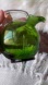 Elegant green glass ball pitcher decanter with a unique handle. Perfect for adding a vintage touch to your decor.