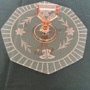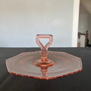 Cambridge Pink Depression Glass Center Handle Serving Tray 11" Octagonal 1930s