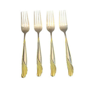 Cambridge Stainless Florentine Set of 4 Dinner Forks Large Silver Gold 7 7/8"