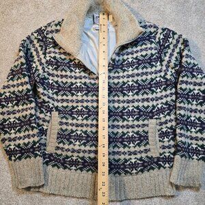 Cambridge VTG Fair Isle Sweater Ragg Wool Full Zip Lined Jacket USA Made Women L