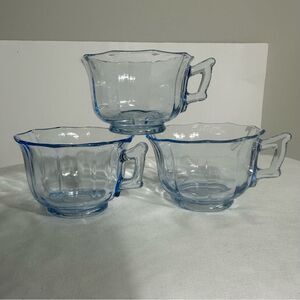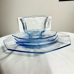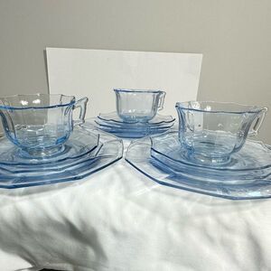 Cambridge Vintage Glass DECAGON Moonlight Blue Depression Cups, Saucers & Plates Set 12