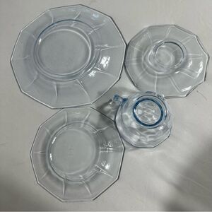 Cambridge Vintage Glass DECAGON Moonlight Blue Cups, Saucers & Plates Set 12