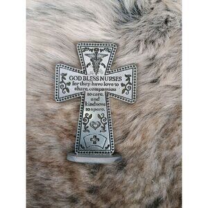 Camco Metal Cross Figurine "God Bless Nurses" With Inspirational Message & Stand