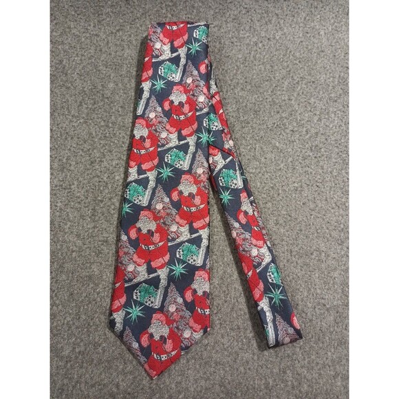 Camden Court Santa On Skis Blue Tie Christmas Trees Presents Stars