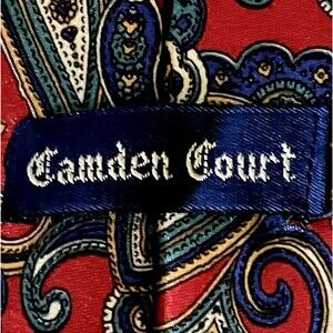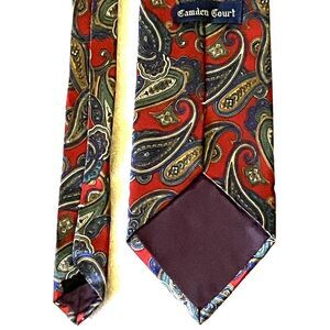 Camden Court Tie Vintage Paisley Shiny Red Blue Wide 4 inch USA