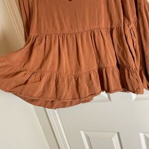 Camel Andree by unit Women's Tan V-Neck Peplum Top size small