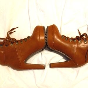 Tan Camel Ankle Bootie in leather and rubber sole.