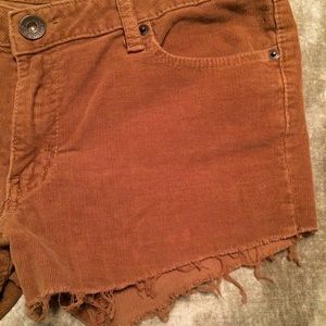 Camel brown corduroy cut-off short shorts. In great shape except there is a small bleach spot on the front (shown in 3rd pic) that's not really noticeable. 98% cotton/2% spandex. Measures 16" across waist, 8" rise, & 2" inseam. Sz 13, By Spoon Jeans for Alloy🐪