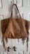 Camel Brown Fringe Leather Tote Bag Oversized Slouchy Boho Hobo Neutral