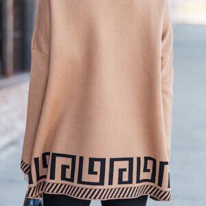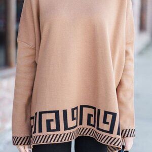 New in bag! Cozy Neutral sweater tunic. Geometric pattern on hemline. Mock neckline. Length 27" Bust 64" Hem width 62" Sleeve length 16.5". 68% Viscose, 23% PPT, 9% nylon. From Boutique Shop the mint!