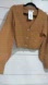 Stylish tan cardigan with V-neck. Features button-up front and long sleeves. Ideal for layering.