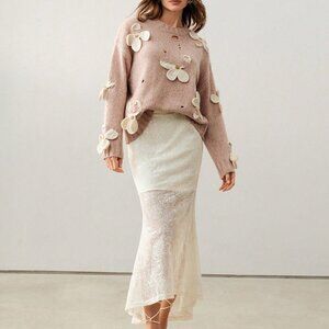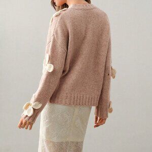Camel Casual Women's Hand-Crocheted 3D Floral Round Neck Sweater