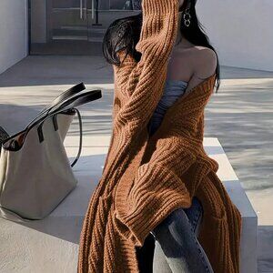Camel Casual Women's Open Front Loose Knit Cardigan