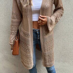 Camel Casual Women's Pointelle Knit Design Long Sleeve Cardigan