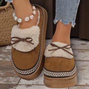 Camel Casual Women's Thick Flat Suede Shearling Slippers