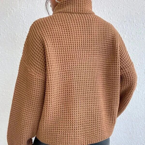 Camel Casual Women's Turtleneck Drop Shoulder Waffle Knit Sweater