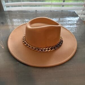 Camel Chain Link Strap Western Fashion Hat Sz O/S