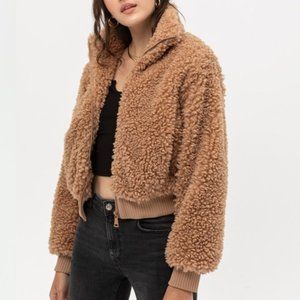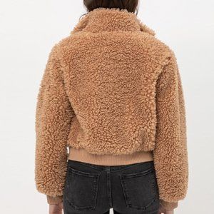 Camel Cozy Soft Fluffy Fur Teddy Bomber Jacket