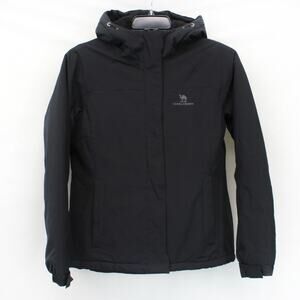 Camel Crown Black Quilted Jacket Coat Sherpa Lined Hooded Outdoor Pockets Small
