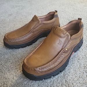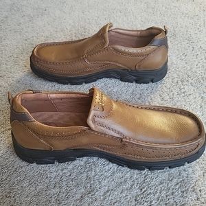 Camel Crown Men's Leather Loafer Casual Shoes Size 11.5 Brown Khaki Pull-On EUC