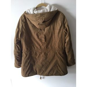 Adjustable waist with strings, fuzzy hood, in great condition & super cute for spring & again in the fall/ winter. Unfortunately it’s too big for me now, but I love it!