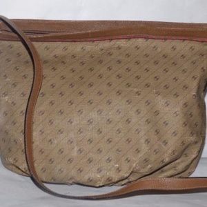 Camel Leather Red/Green Striped Accents/Link Logo Print Hobo