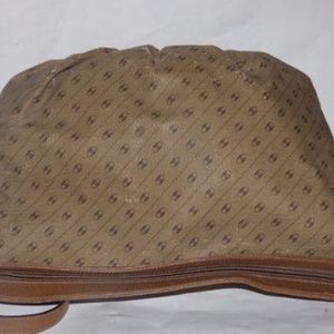 Vintage, Gucci Accessory Collection, RARE, diagonal logo link print coated canvas/leather in browns, zip top, XL hobo style bucket bag with green/red leather accents! Oval shaped 'Gucci' link design. Medium brown leather bottom, strap, top, and red and green striped accents throughout. Wear and aging consistent for pre-owned vintage item. Please see photos for more details. All measurements are approximate. 15"L x 6"W x 12"H; Strap drop 14" to 18" adjustable. Item #: 17706916. N11011