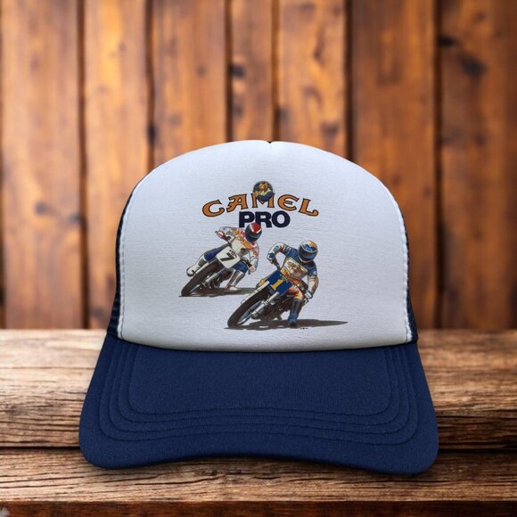 Camel Pro Motorsport Mens Trucker Hat Navy Nascar Racing 80s Logo Camel Joe