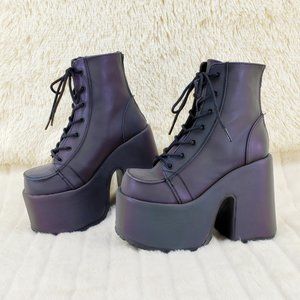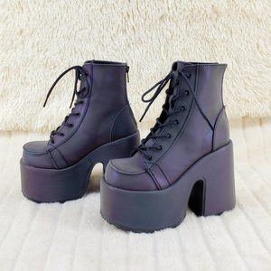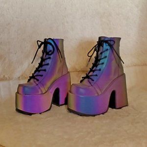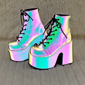 Camel Purple Green Reflective Rave Royalty Festival Platform Ankle Boots