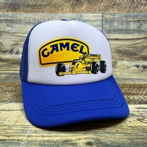 Camel Racing Mens Trucker Hat Blue Snapback Motorsport Drag Retro Baseball Cap