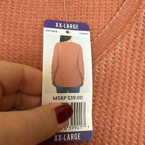 Cozy camel ribbed knit sweater. Perfect for casual wear.