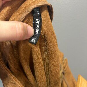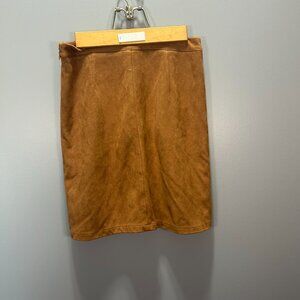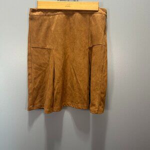 This camel brown suede skirt is an XS, and is the perfect look for this fall! Add a sweater or v-neck blouse on top, and it's giving fall. Very cutesy.