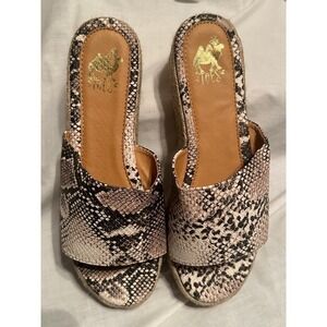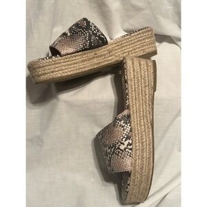 Camel Toes Flatform Espadrille Slide Mules Neutral Faux Snakeskin Sandals