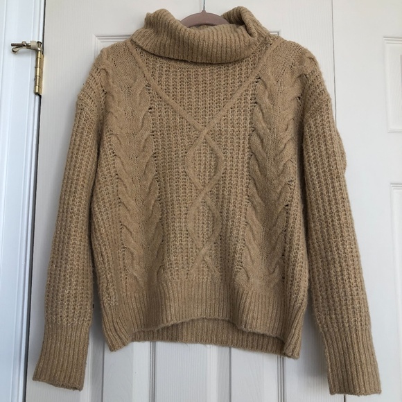 light knit, loose fit cowl/ turtleneck sweater camel colored, worn once