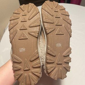 House shoes are tagged as a size 8. I wear a 7 and they are pretty snug around the top of my feet (not toes). Good news is they don't slip off!