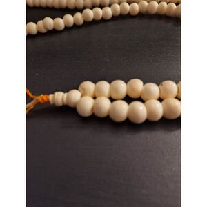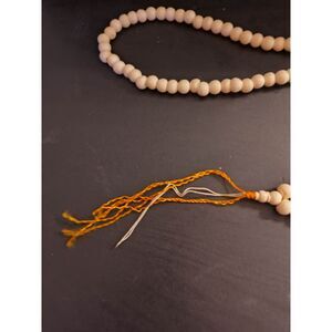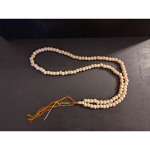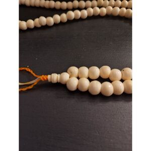 long bead necklace, I think is a prayer necklace. Was told the beads are camel bone. Circumference of the piece is 30".