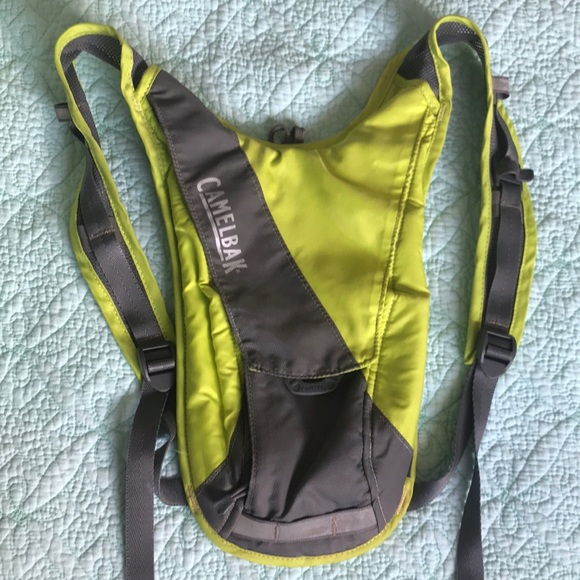 CamelBak lightweight cycling or running hydration pack. Lightly used, great condition! Bladder not included (unless you want it) but shown for size (50 oz) and to see it uses wide mouth reservoir which is so easy to refill! Perfect for 2 hr 🏃♀️ or 🚴! Zippered pocket for ids, keys, etc. Ventilated mesh harness and breathable air mesh back panel- so comfortable you forget it’s on! Safety yellow. Nylon.