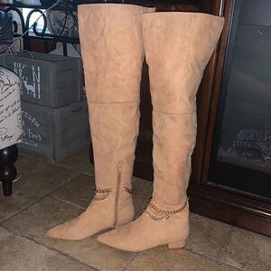 Over the knee jeweled vegan suede boots
