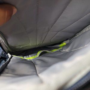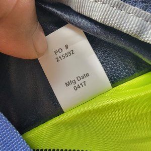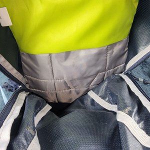 Good looking hiking pack with its water bladder. As you can see in the pictures, there is a blue spot near one of the straps as well as a tear on one of the side mesh pockets.