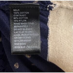 Camellia Cardigan Sweater Womens Size Medium Navy Blue Tan Lace Semi Sheer Front