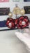 Elegant red floral earrings with pearl accents. Perfect for adding a touch of sophistication.