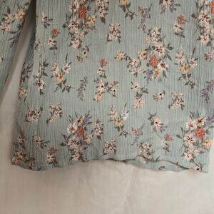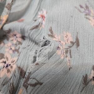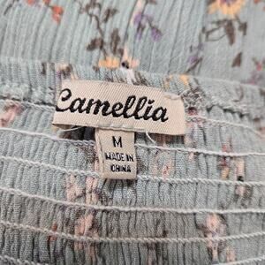 Camellia Women's Lite Blue Floral Romper Smocked Back V-neck Button Front Size M