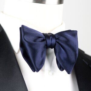 Camellucci Men’s Self-Tie Bow Tie – Big Butterfly – Navy Charmeuse Silk – Style S722