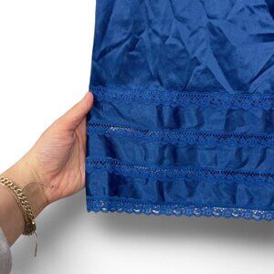 Camelot Slip Skirt Vintage Made In USA Deep Blue Lace Trim And Slit Size M