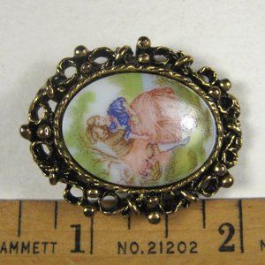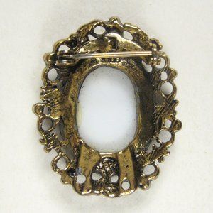 Cameo Figurative Brooch Pin Goldtone Vintage 1980s 1.4 in Estate Oval Ceramic