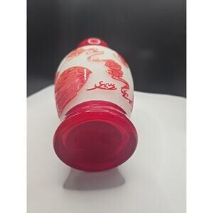 This 12" red Chinese cameo glass vase features a hand-cut design of Chinese art boys and bats, showcasing the intricate craftsmanship of Galle. The unmarked piece exudes a vintage charm with its cut glass production style and vibrant red color, making it a stunning decorative piece for any home or collector's display. Its unique design and Chinese theme add a touch of elegance and artistry to any space, making it a standout piece for those who appreciate fine glassware.