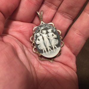 Cameo Pendant Antique Art Nouveau 3 Maidens Muses Goddesses Arts Sciences Litera