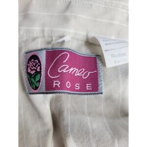 Cameo Rose Tan with white striped long sleeve button down collared top, size 9/10. In excellent condition. Top is structures and made to shape figure. 100% cotton. Great for casual career wear.