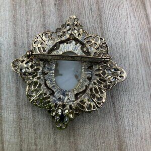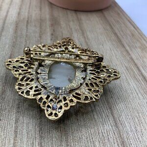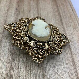 Cameo Vintage Cream Elegant Gold Tone Brooch Pin